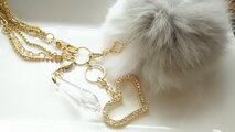 *秋冬*スワロ&ファー♪バックチャーム・G(ホワイト×グレー)