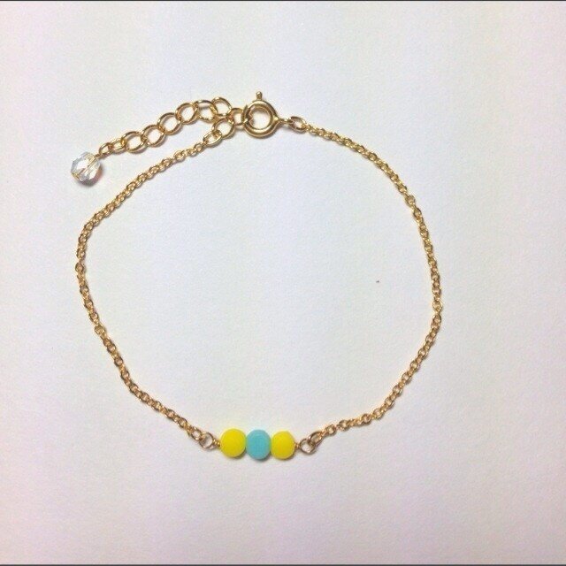 約3mmほどの小さなパーツを3つ繋げた華奢なブレスレットです。