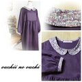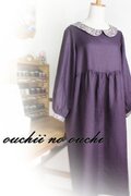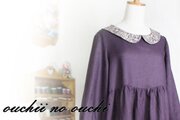 しっとりグレープリネン100とリバティJenny's Ribbonsジェニーズリボンズ きらめきシリーズパープルでフラットカラーのロングワンピースをおつくりしました。