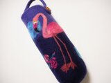 フラミンゴとバラの花を描いた ペットボトルケース。