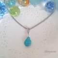 雫型のターコイズにクリアカラーのスワロフスキーが光る爽やかなネックレスです。