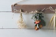 自家製ドライフラワーを古材風に加工した板にセットしました。