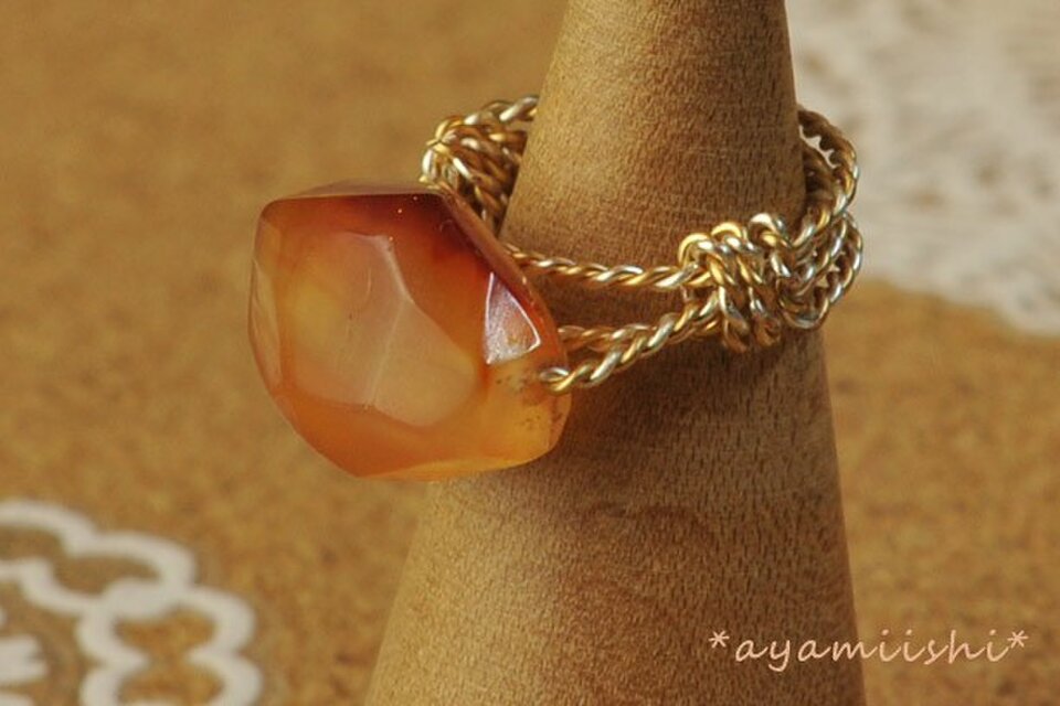 半透明で柔らかな光沢を持つ天然石、カーネリアンをのせました。