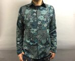 新作手作り長袖和柄シャツ(型染四季花文様)濃紺