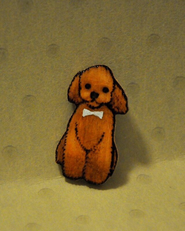 木製のプードルのブローチです。