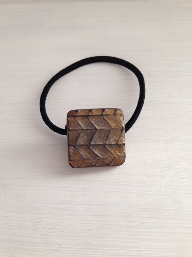 半磁器土を型押し成形した陶製のヘアゴムです。