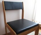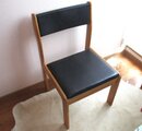 背もたれ部分は、座面より少し固めのスポンジを芯に厚さ約1ミリの丈夫な黒い牛革に貼り直し、座面と同じシボ感のある引き締まった感じになりました。