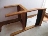 元は布張りで、木材部分はニス塗りでしたが、素材がとても良さそうな気がしたので、全てパーツを分解し、全部のニスをサンドペーパーで落とし、チークオイル仕上げにして、再度ボンドで組み立て直しました。