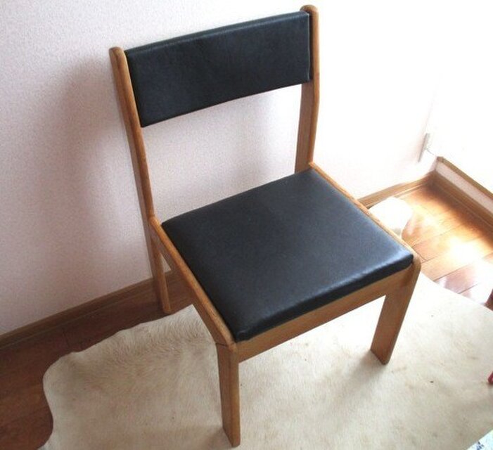 痛んでいた、座面部分は針葉樹合板と厚さ2センチの固めのチップウレタンを組み合わせて新たに作りました。