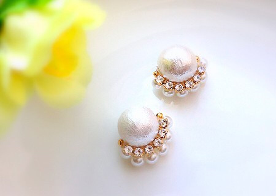 ★こちらは、台座はなく、コットンパールに直接金具を貼り付ける