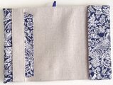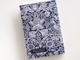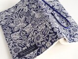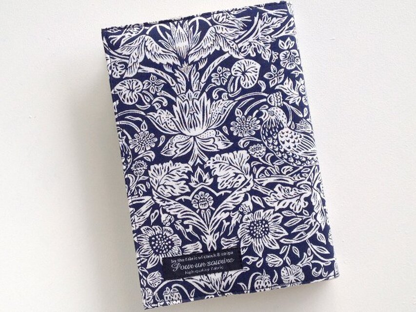 リバティの人気生地、ストロベリーメドウ Strawberry Meadow(ネイビー)とハーフリネンで文庫本サイズのブックカバーを作りました。