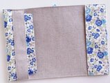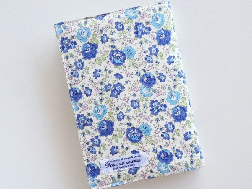 リバティの生地、フェリシテ Felicite(ブルー×ライトブルー)とハーフリネンの生地でブックカバーを作りました。