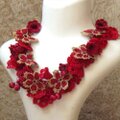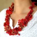 レース編みのネックレス「ビジュー」レッド&ゴールド 1点