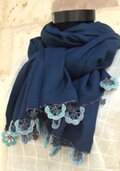レースの花付き パシュミナストール PS108 ティールグリーン