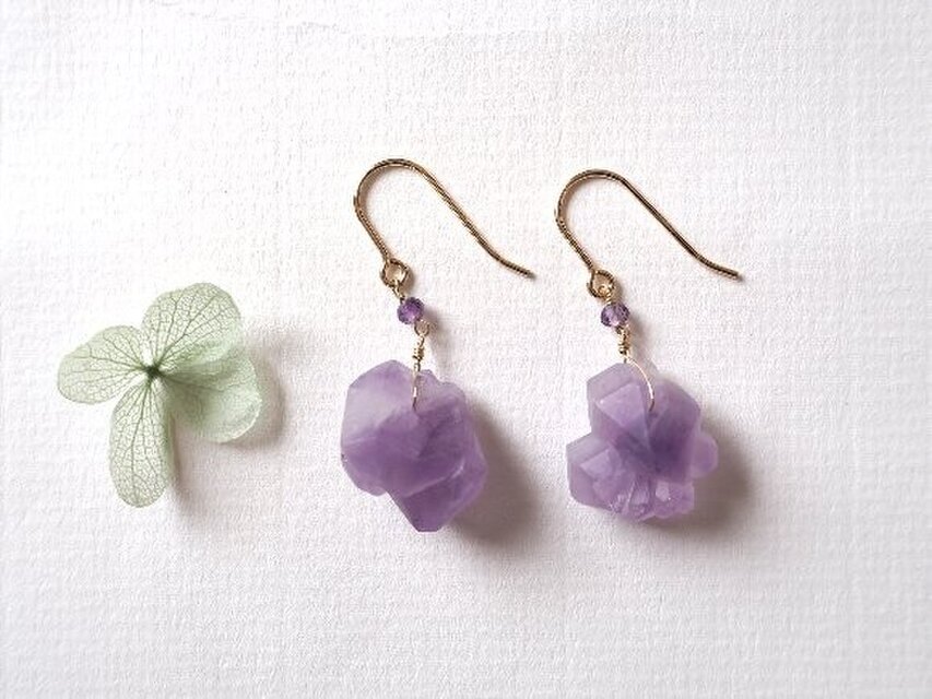 紫色のピアスが欲しいと言っていた母への贈り物として購入しました。 可憐なお花のようでかわいいです。つやつやできれいなアメジストが贅沢に使われており、画像よりも実物の方が素敵です。