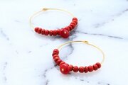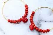 珊瑚とココビーズのフープピアス