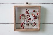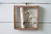 アンティーク調に仕上げた自家製フレームにドライフラワーや小枝をはめこみました。