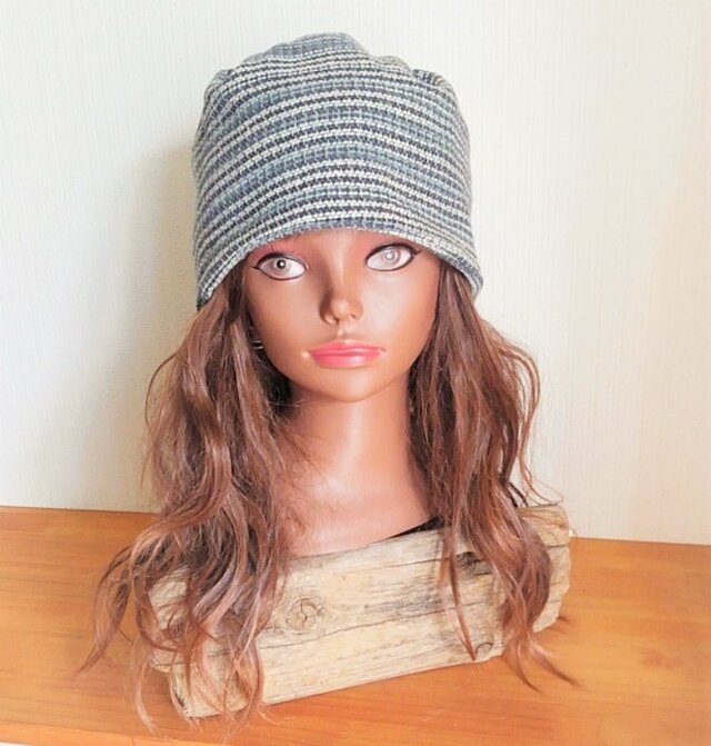 ■うしろをクシャっとさせてゆったりかぶったり、寒い日は耳までスッポリかぶる事もできます。