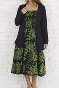 ろうけつ染めリーフ柄ティアードワンピース<グリーン>