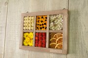 アンティーク調に仕上げた自家製フレームにドライフラワー(センニチコウ、ルドベキア、オレガノ、オレンジ、カイザイク)を貼り付けました。