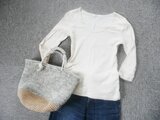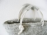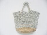 麻ひもの丸底から二本取りの毛糸で編み上がり、トートバックのような形に仕上げています。