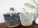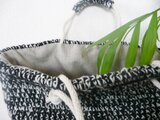 底は麻ひもで丸く、側面は増し目なしで編みあがり、トートバックの様に仕上げています。