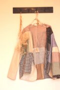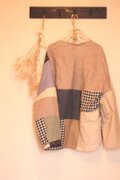 リネン、コットンリネン、端切れをパッチして他にはない、個性のある柄合わせでお作りしました。