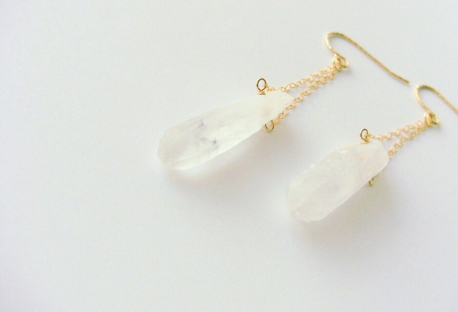 幸運のお守り・星入り水晶の氷柱カットをピアスに仕立てました。
