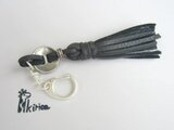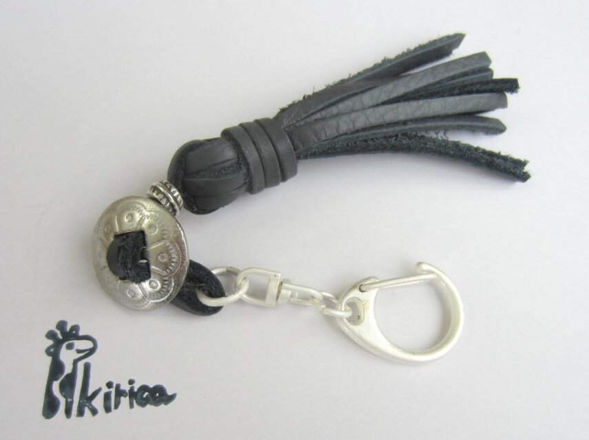革紐タッセルとコンチョボタンのキーホルダー(グレー)(受注製作)