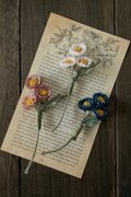 落ち着いた色合いの素朴で小ぶりなミニデイジー3輪のコサージュ。