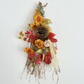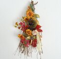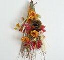 花材:アーティフィシャルフラワーマリーゴールド・栗の実・ススキ・ベリー・マム・メープルリーフドライフラワー枝など