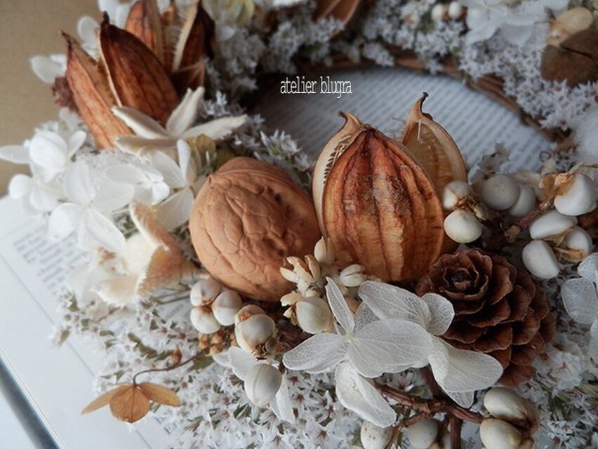 しっとりした大人色のリースで、とても素敵です。 毎回、素敵な作品をありがとうございます。