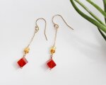 【14kgf】紅茶キューブピアス/天然石