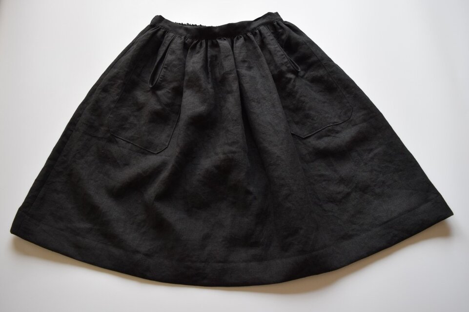すこし厚手のしっかりした生地の天日干しリネンのギャザースカートです。