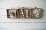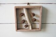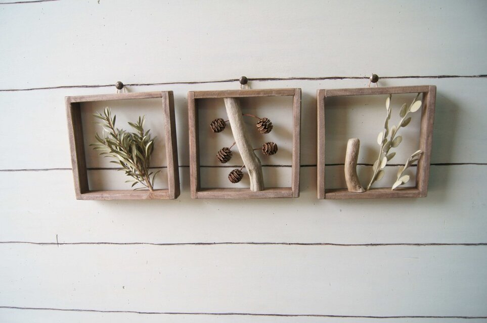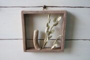 アンティーク調に仕上げた自家製フレームにドライフラワーや小枝をはめこみました。