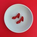 クツのブローチ 赤×ドット