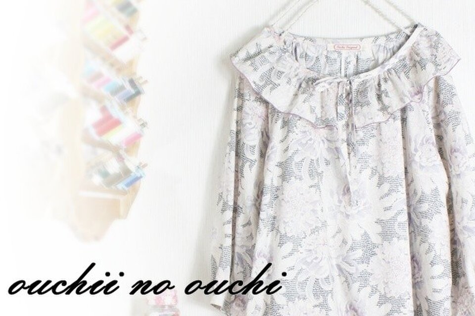 リバティタナローン AlexanderBlooms lavenderblush色で巻きロック仕上げのフリル襟リボンラグランロングブラウスを作りました。
