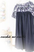 オーバーで胸の上の切り替えが優しい雰囲気のシルエットをつくって素敵です。またリバティで襟元の巻きロックフリル仕上げにしておりますので