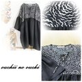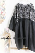 秋にむけてリバティタナローン大人気柄Puffパフブラックとしっとりリネンブラックでギャザーがたっぷり入ったポンチョ風なロングタイプのブラウスを作りました。