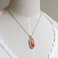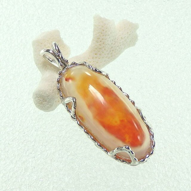 中心に赤みのさした水入りアゲートを粒飾りのペンダントに仕上げました。