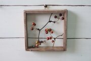 アンティーク調に仕上げた自家製フレームにドライフラワーや小枝をはめこみました。