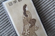 素材:プレミアムビンテージ未使用切手「見返り美人」、革