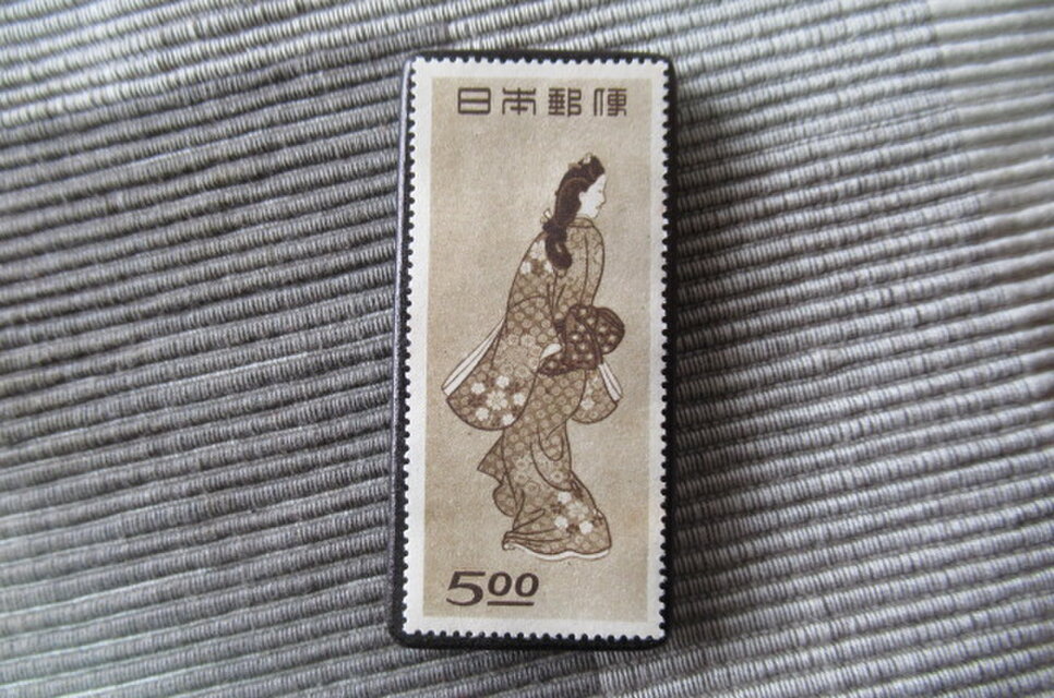 日本 「見返り美人」美術切手ブローチ 1555