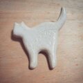 白い土と釉薬を使ったシンプルな陶器のブローチです。