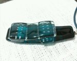 スチールブル一のガラスにクリアガラスを重ねて熔かしています。