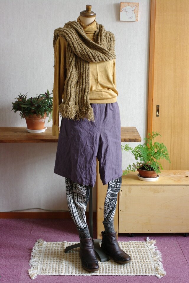 ラベンダーグレイのリネンツイル地でハーフパンツを作りました。