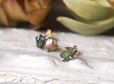 原石のグリーントルマリンとグレーパールのピアス w384