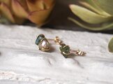原石のグリーントルマリンとグレーパールのピアス