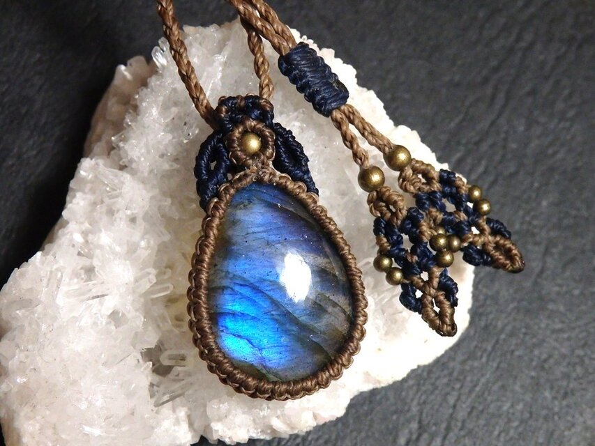 .·˖*✩⡱手のひらの宇宙。/ ラブラドライトマクラメペンダント