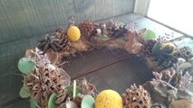 ユーカリの葉、クラスペディアなどでアレンジしました。